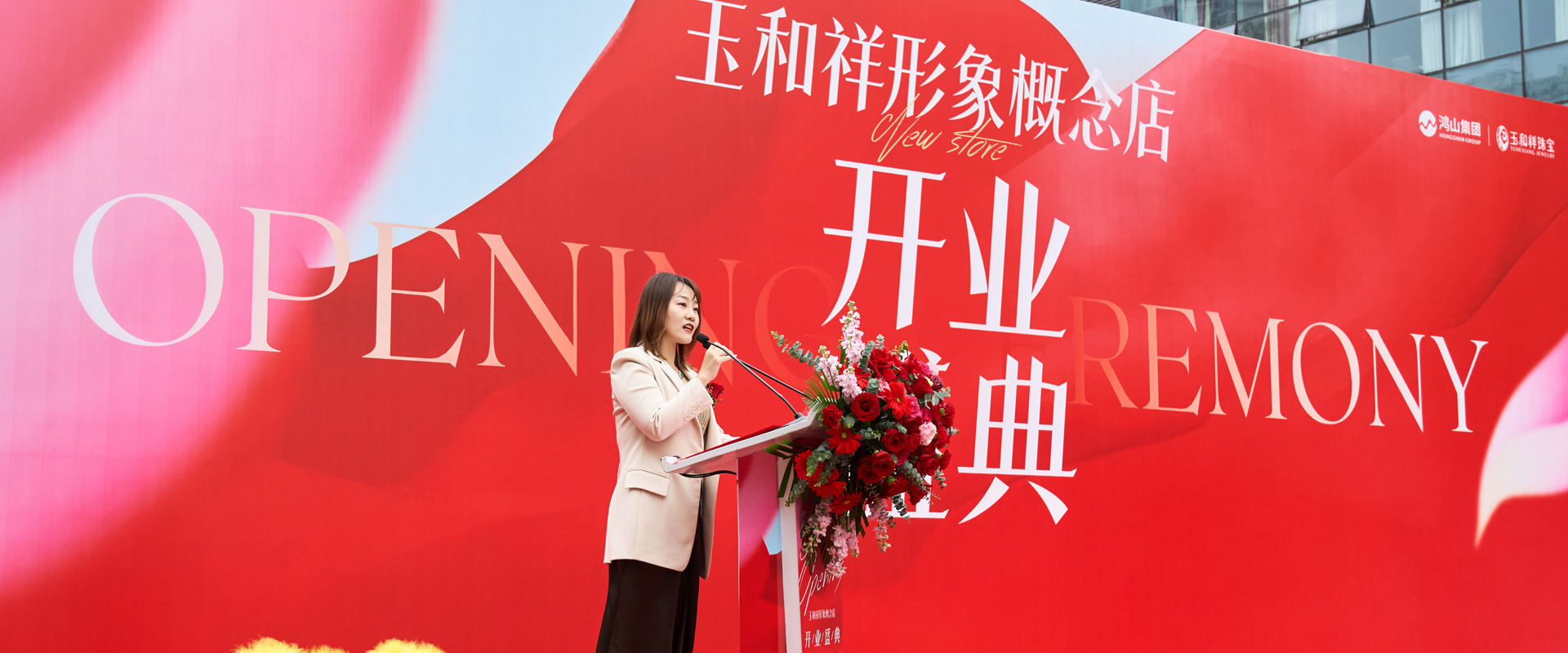 玉和祥形象概念店开业庆典,在中国鼓和小提琴的雅乐交融中,迎来盛大启幕,现场人潮涌动,气氛热烈非凡,各界嘉宾、媒体朋友及众多客户,共同见证开启玉和祥珠宝文化的新篇章。鸿山集团总裁、玉和祥珠宝董事长张丽女士为新店开幕致辞,代表鸿山集团向所有嘉宾和客户表达了诚挚的感谢,为玉和祥新店送上美好祝福,并在致辞中提到:自贡是玉和祥诞生和成长的地方,也是玉和祥汲取文化营养、向上生长的沃土。玉和祥形象概念店在自贡的璀璨绽放,是对玉和祥品牌理念的全新演绎和升华,不仅将成为展示玉和祥品牌文化、传递东方美学的艺术空间,也将为我们的客户带来全新的购物体验。