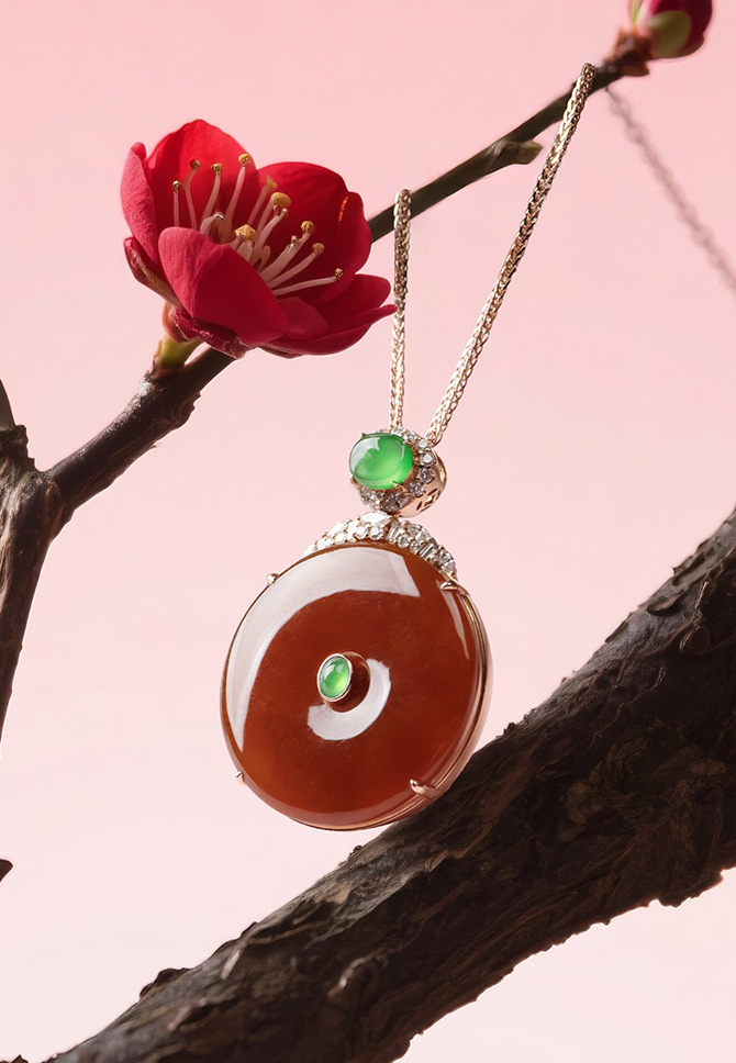 明媚热烈的红翡象征 鸿运、喜悦、热情、吉祥 藏纳天地吉光,鸿运随身 以圆满之形,承托一路顺遂,福随朝夕