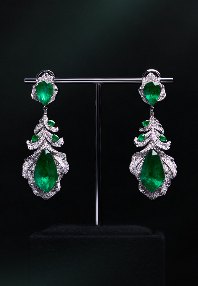 饱满澄澈的祖母绿主石 犹如初春绿意盎然的生命气息 以柔美线条勾勒轮廓,辅以精致镶嵌 再现繁花盛放的灵动姿态