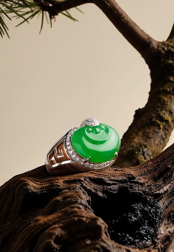 佩戴即纳天地吉兆,藏福泽于无形 以天然翠色的灵韵 诠释东方祥瑞的庄重内涵 尽显古典雅韵与美好祈愿