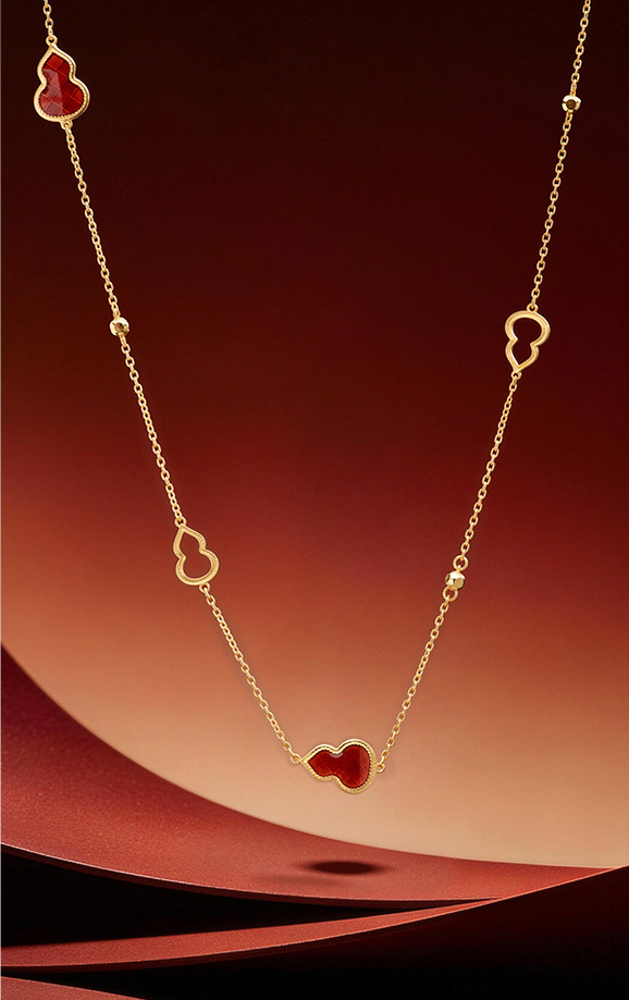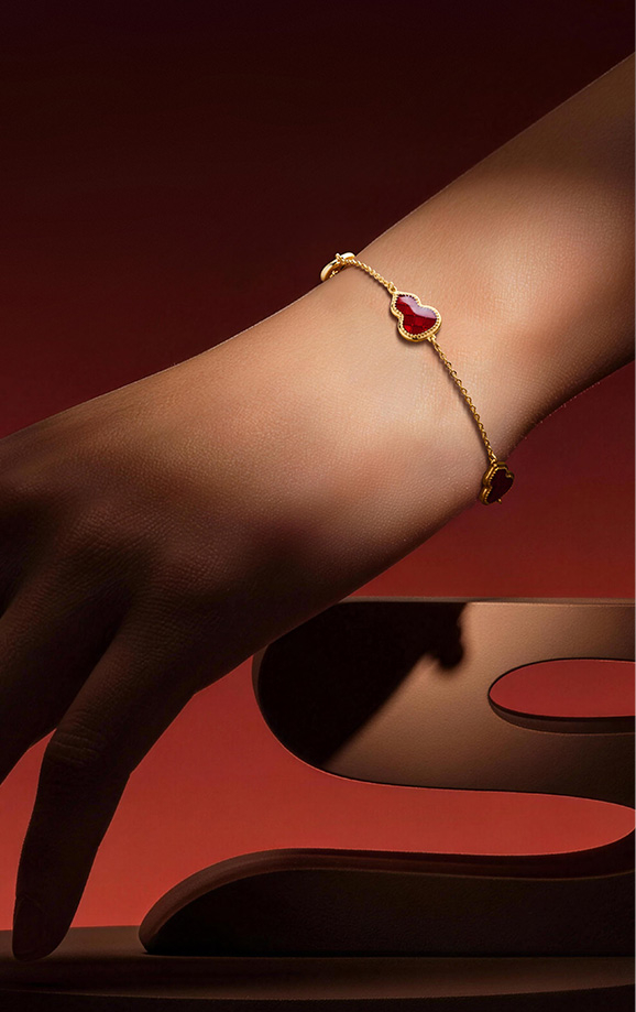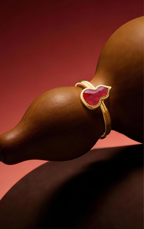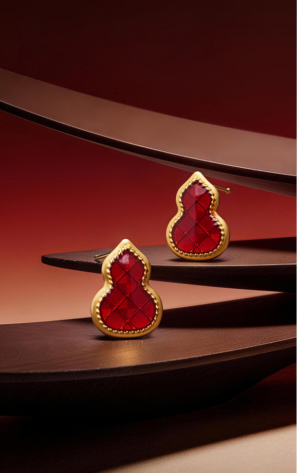 戴上小葫芦,福禄争相至,撷葫芦灵秀之形,萃珐琅绮丽之彩,以简约雅致笔触, 于熠熠金芒间精雕细琢,浓郁鲜红透亮的珐琅彩,为您开启好运新程。