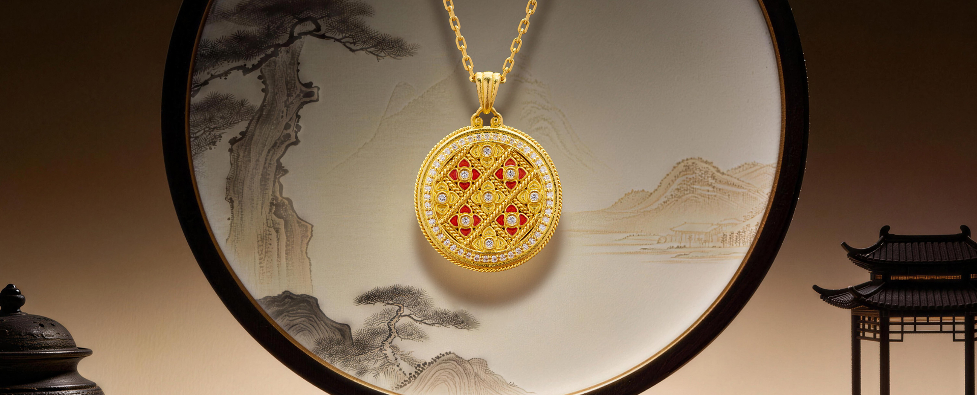 罗盘中描绘盛开的花瓣,花心点钻,美轮美奂,诠释东方古典美学,尽释奢雅气质, 缂丝工艺赋予金面丝绒质感,圆佩流转间,藏着“双面人生,两面皆美”的巧思。