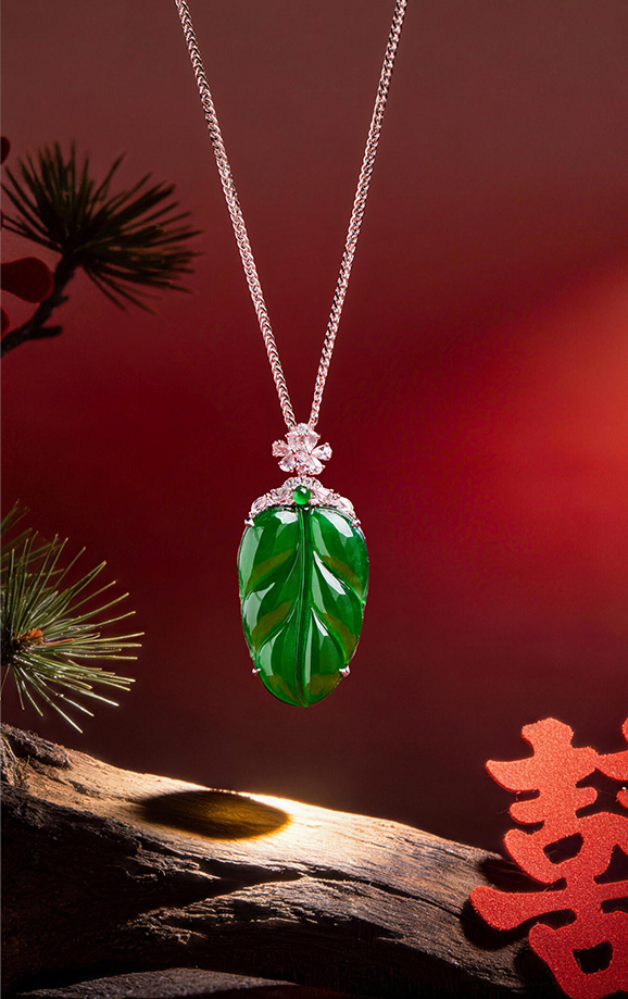 翡翠温润,雕琢出叶脉相连的形态,象征着爱侣间枝叶相萦的缘分。 金玉为契,承载“枝繁叶茂”的家族期许,更许下“永结同心”的婚姻诺言。愿这片玉叶,见证日夜相伴、生生不息的圆满爱情。