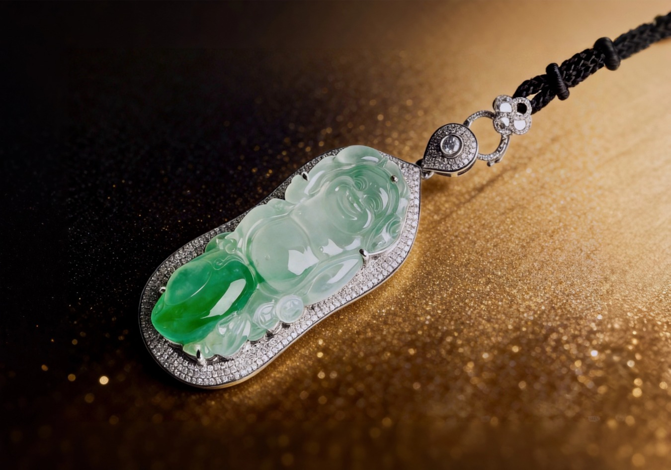翡翠镶嵌,是自然与人文的浪漫邂逅,是将翡翠的温润细腻与贵金属的华丽典雅巧妙融合的艺术。匠人们以无尽的创意与精湛的技艺,将一块块精选的翡翠原石,精心雕琢成形态各异的艺术品,再以璀璨夺目的钻石或缤纷多彩的宝石作为陪衬,仿佛为翡翠披上了一袭璀璨的华服,让其在光影交错间,更显灵动与生机。