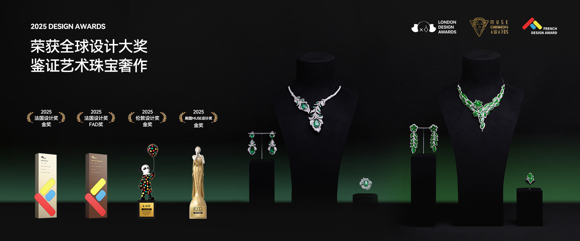 玉和祥珠宝设计总监「赵明渊」设计作品:翡翠套系《花舞颜语》系列与祖母绿套系《繁花绮珍》系列,凭借原创设计从全球数万件珠宝中脱颖而出,均荣获2025年法国设计奖·金奖,美国muse设计奖·金奖,伦敦设计奖·金奖。这一殊荣不仅是对玉和祥珠宝设计实力的国际认可,更是对祖母绿与翡翠,现代珠宝艺术融合创新的高度赞誉,永恒绿境东方绮梦,匠心致未来让世界看见玉和祥。文脉相承 铸就品牌熠熠华光,与众不同的设计哲思,璞玉初琢般的赤诚初心,引领着玉和祥不断地探索与突破珠宝设计的更多可能,从而赢得了伦敦设计奖·金奖等多项国际顶级奖项,是对玉和祥的高度赞誉与肯定,激励品牌用更多的创新、更大胆的设计,去突破自我,创造更多惊艳世界的珠宝华彩!