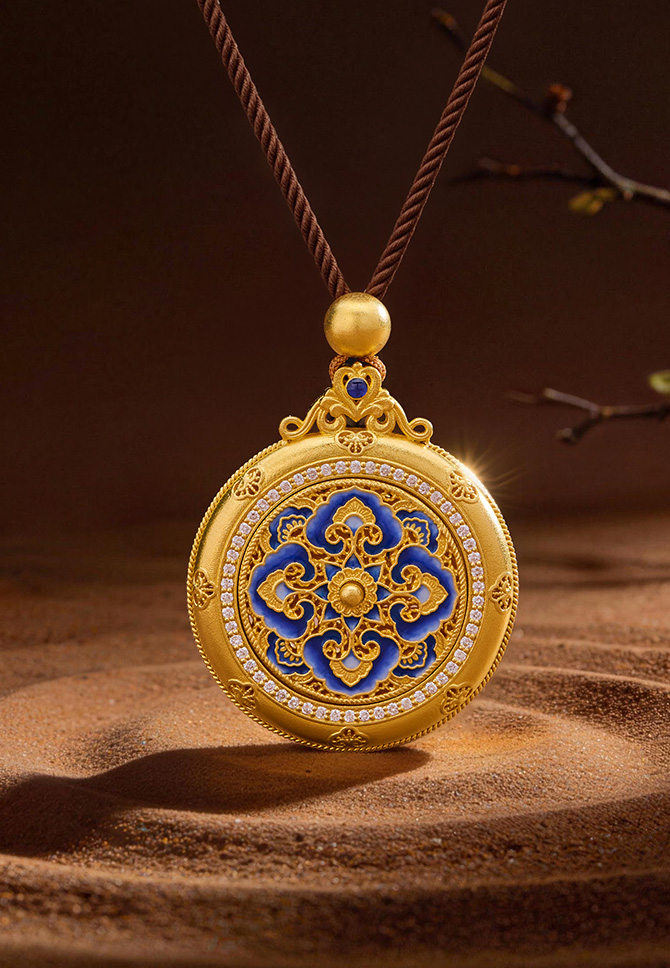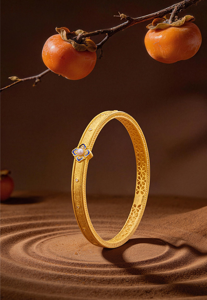 受传统青花瓷器启发,汲取千年瓷蕴精华,打造清新感黄金青花配饰, 让大国风潮实现芳华永驻,黄金的璀璨与钻石的闪耀相得益彰,镂空花丝与鎏彩工艺精巧结合,古韵灵动。