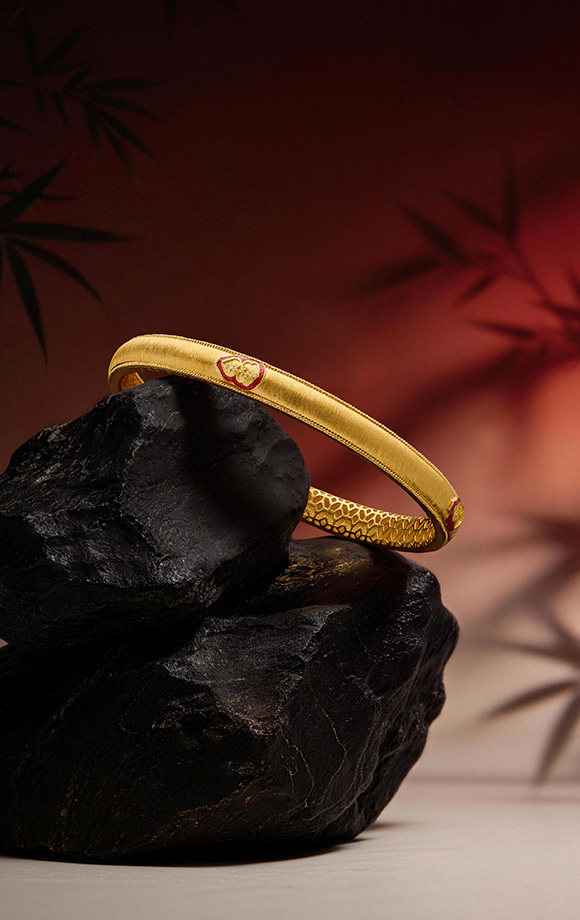 圆润的轮廓,装满顺遂与安康,流畅的线条,勾勒出如意与美满,以灵动葫芦为形, 红珐琅镶嵌,如灵动火焰,为整体增添一抹热烈与吉祥,与金色相得益彰,诉说福禄双至的喜悦。