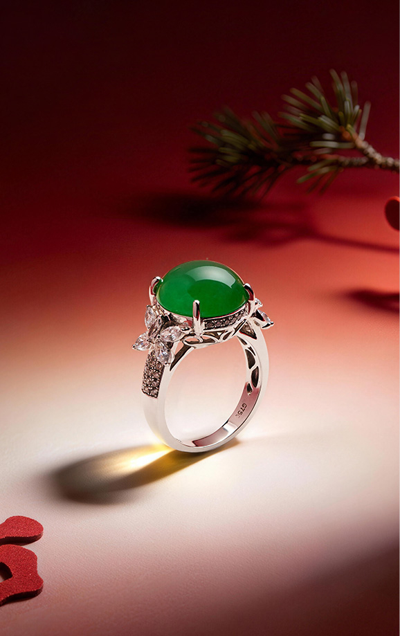 翡翠温润,雕琢出叶脉相连的形态,象征着爱侣间枝叶相萦的缘分。 金玉为契,承载“枝繁叶茂”的家族期许,更许下“永结同心”的婚姻诺言。愿这片玉叶,见证日夜相伴、生生不息的圆满爱情。